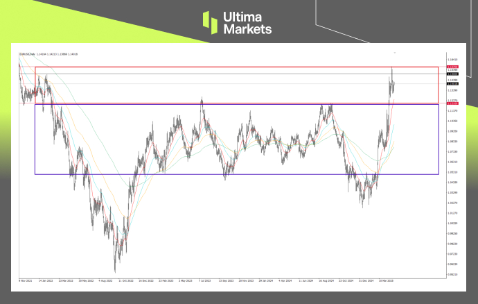 虽然上周欧元小幅回调,欧元兑美元徘徊在1.1300附近,但欧元整体依然表现强势。此次升值主要得益于市场对美元信心的减弱(因关税风险上升),以及德国和欧元区扩大财政支出的积极推动。