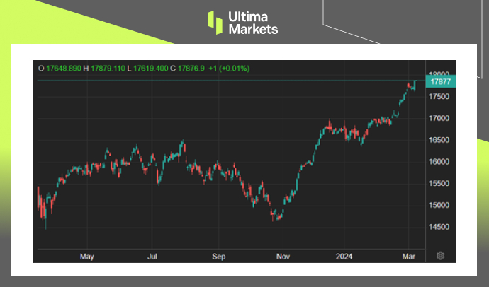 法兰克福DAX 40指数扭转早盘下跌趋势,而后以0.14%收涨,创下17,868点的历史新高。 于此同时,欧洲央行选择维持利率不动,并且预测通胀大幅下滑,刺激市场在 6 月降息的希望。