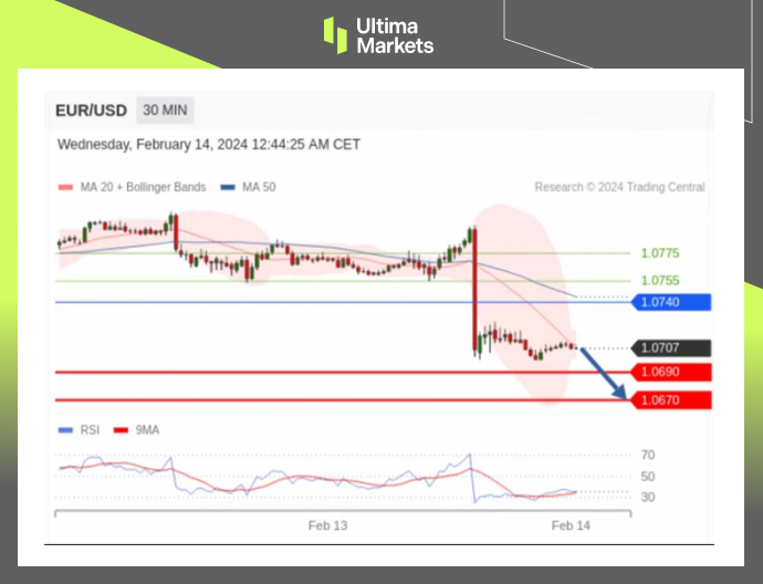 今日Ultima Markets 为您带来了 2024年 2月 14日的欧元兑美元深入分析。