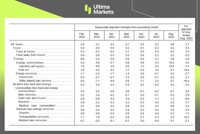 On September 13th, the U.S. Department of Labor (BLS) released the Consumer Price Index (CPI) in August increased by 3.7% year-on-year, slightly higher than the market estimate of 3.6%, and higher than the previous value of 3.2%.