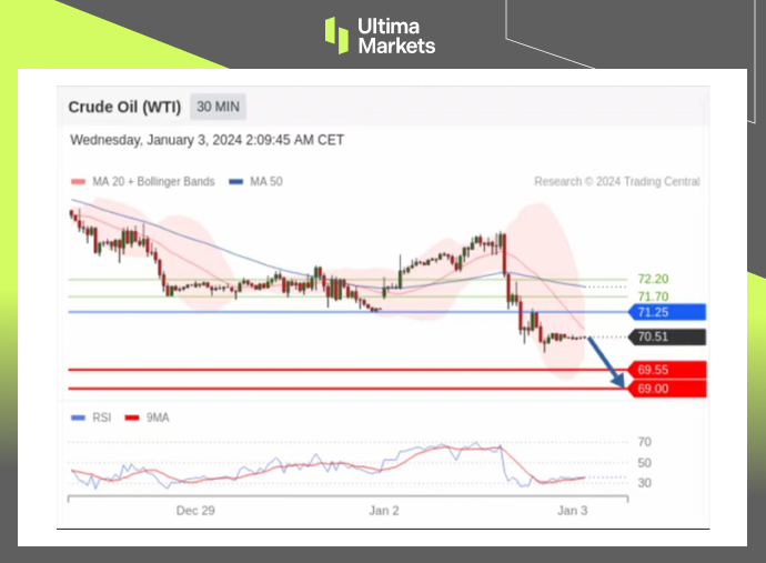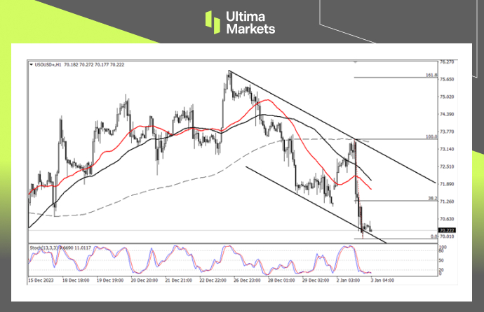 Dalam analisis komprehensif ini, Ultima Markets memberikan Anda rincian mendalam mengenai WTI OIL untuk tanggal 2 Januari 2024.