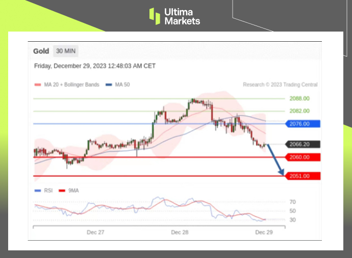 Dalam analisis komprehensif ini, Ultima Markets memberi Anda rincian mendalam mengenai XAUUSD untuk tanggal 29 Desember 2023.