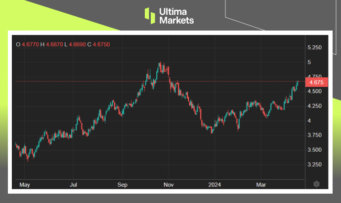 Imbal hasil pada catatan Treasury AS 10-tahun melonjak menjadi 4,7%, puncaknya sejak 2 November, karena berkurangnya ketegangan geopolitik dan indikator ekonomi Amerika yang kuat mengurangi selera untuk obligasi. Kontrak berjangka menunjukkan sedikit mayoritas pasar mengharapkan bank sentral negara itu untuk mulai menurunkan suku bunga hanya pada bulan September, sementara hampir seperlima telah memposisikan dirinya untuk tidak adanya penurunan suku bunga sama sekali pada tahun 2024.