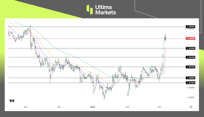This week, EUR/USD has experienced a strong bullish run, fueled by optimism surrounding German/EU spending plans and weakness in the US dollar. The ECB’s hawkish shift may continue to favor the euro in the near term.