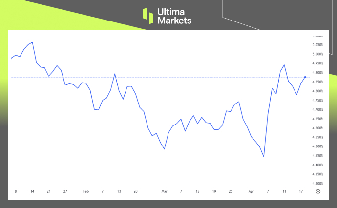 美國20年期國債收益率攀升至近兩個月來的新高,接近4.90%,由於貿易緊張局勢升級以及全球貿易情緒惡化,投資者要求更高的溢價。