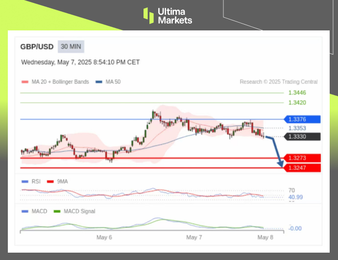 I confirm my intention to proceed and enter this website Please direct me to the website operated by Ultima Markets , regulated by the FCA in the United Kingdom今日Ultima Markets 為您帶來了 2025年 5月8日的英鎊兌美元深入分析。