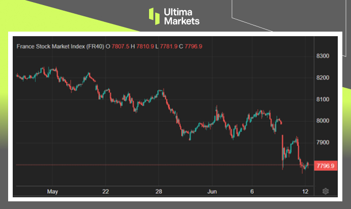 信用評級機構示警,政治不確定性,再加上國民聯盟獲勝機會,可能會削弱法國減債力道。 這樣的擔憂導致法國10年期 OAT 債券殖利率落至七個月以來的最低水平。 隨著對即將公佈的美國消費者物價指數 (CPI) 數據和美聯儲政策公告的預期增強,交易員採取更謹慎的態度。 債券市場反轉,銀行股賣壓灌頂;法國興業銀行、法國巴黎銀行和法國農業信貸銀行的股價分別下跌 5.1%、4.1% 和 3.9%。 同樣地,對信用風險敏感的商業地產公司 Unibail Rodamco Westfield 亦跌 4.3%。