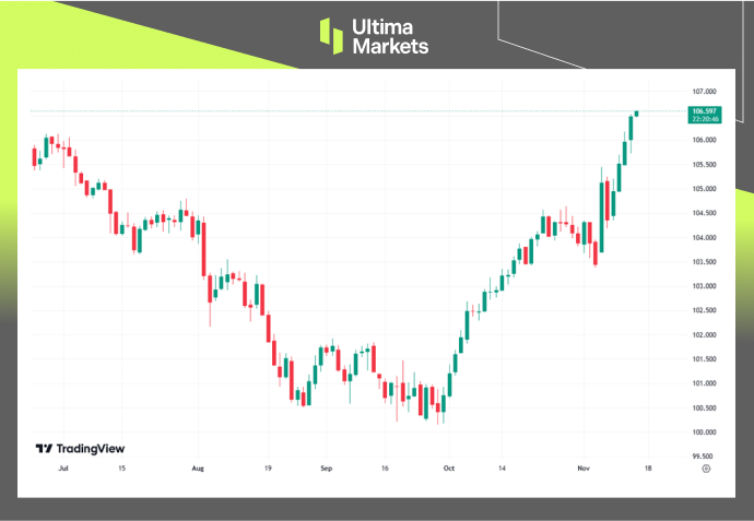 周三,美國勞工統計局公布,消費者價格指數(CPI)連續第四個月上漲0.2%,與路透社調查的經濟學家預期一致。按年率計算,10月份CPI同比上漲2.6%,高于9月份的2.4%,也符合市場預測。報告發布後,美元指數上漲0.49%,收于106.48。