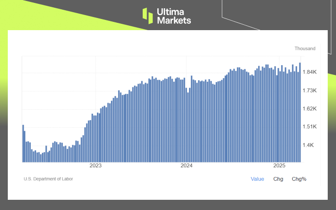 在勞動力市場方面,截至2025年3月22日當週,持續申領失業救濟人數升至1,900,000人,創下疫情以來新高。同時,截至3月29日當週,初請失業金人數為219,000人。