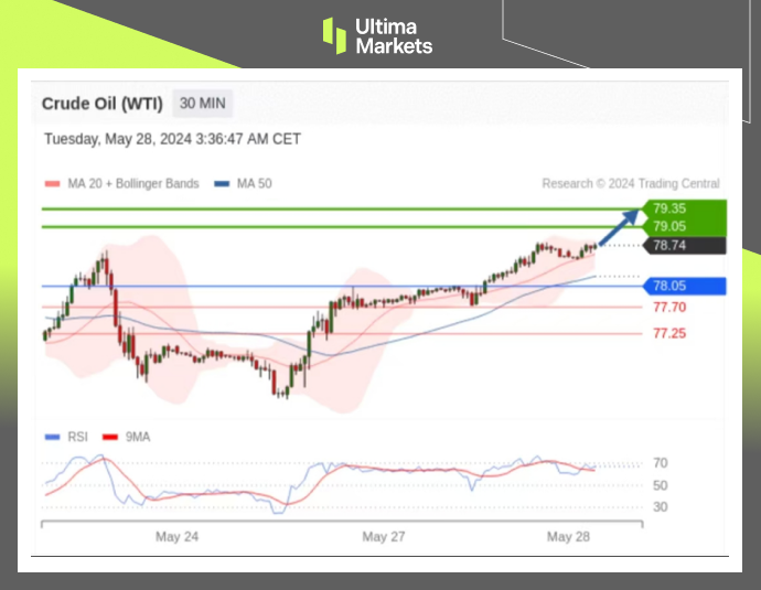 今日Ultima Markets 為您帶來了 2024年 5月 28日WTI原油的深入分析。