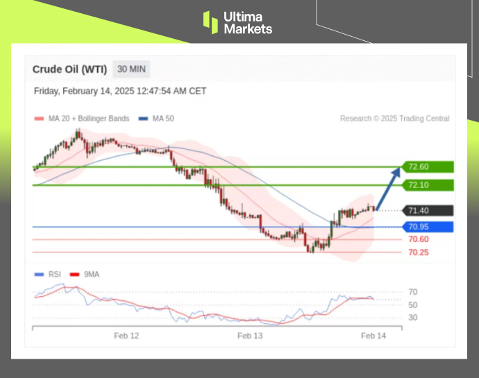 今日Ultima Markets 為您帶來了 2025年 2月 14日的WTI原油深入分析。