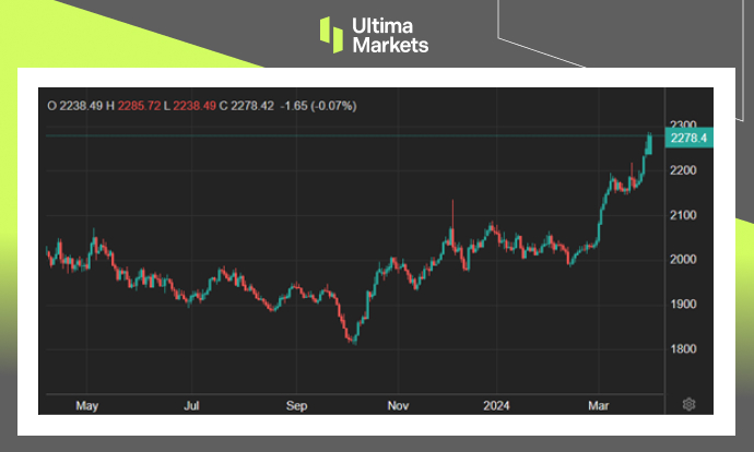 地緣政治緊張,加以投資基金和央行買盤,將金價推升至前所未有的高度,至每盎司 2,270 美元以上,沖淡強勢美元和美國高利環境影響條件。